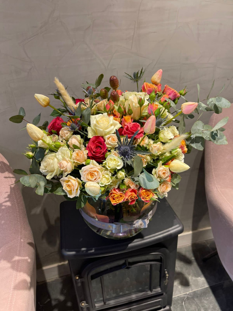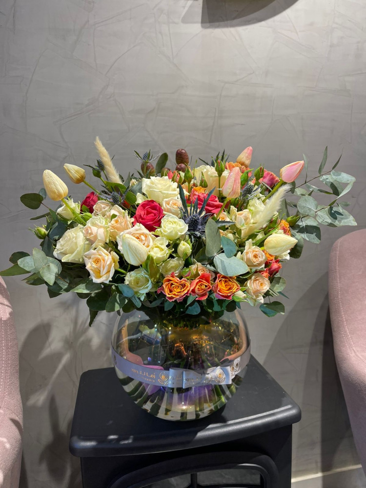 بوكس زجاجي بتنسيق ورد طبيعي