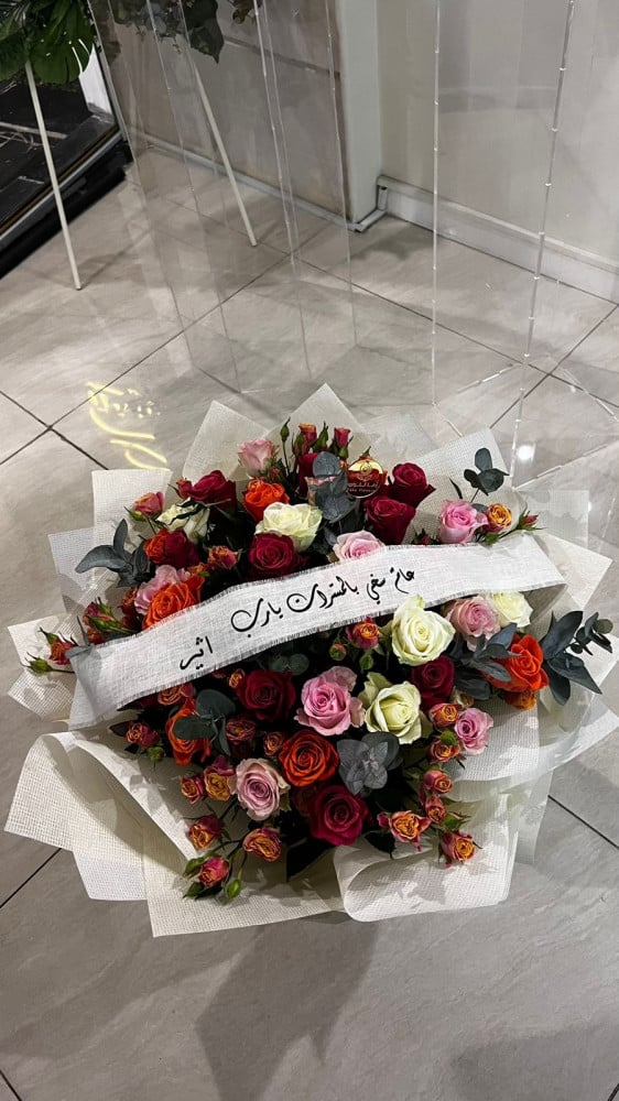 بوكيه ورد كبير+ شريطه طباعة